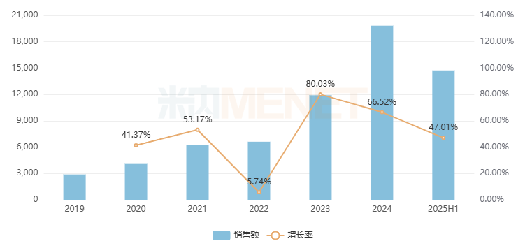 正大制药的西药仅在2022年出现过下滑,2023年起恢复高速增长态势,销售额在2024年达到了8.08亿元,2025上半年增长率高达53.45%。目前该集团在网上药店热销的西药包括了氟比洛芬凝胶贴膏、恩替卡韦分散片、贝前列素钠片、利马前列素片、盐酸氨基葡萄糖片等。
