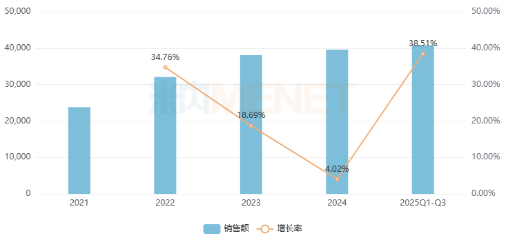 参苓健脾胃颗粒具有补脾健胃、利湿止泻的功效,用于脾胃虚弱、饮食不消、或泻或吐、形瘦色萎、神疲乏力,是OTC乙类品种。在中国零售药店终端,该产品近年来销售额稳步攀升;2025Q1~Q3首度突破4亿元,已超越2024年全年销售水平,为健胃消食中成药TOP2产品,从一级集团格局上看,华润医药占比超60%,云南白药集团同比涨幅达182.64%。