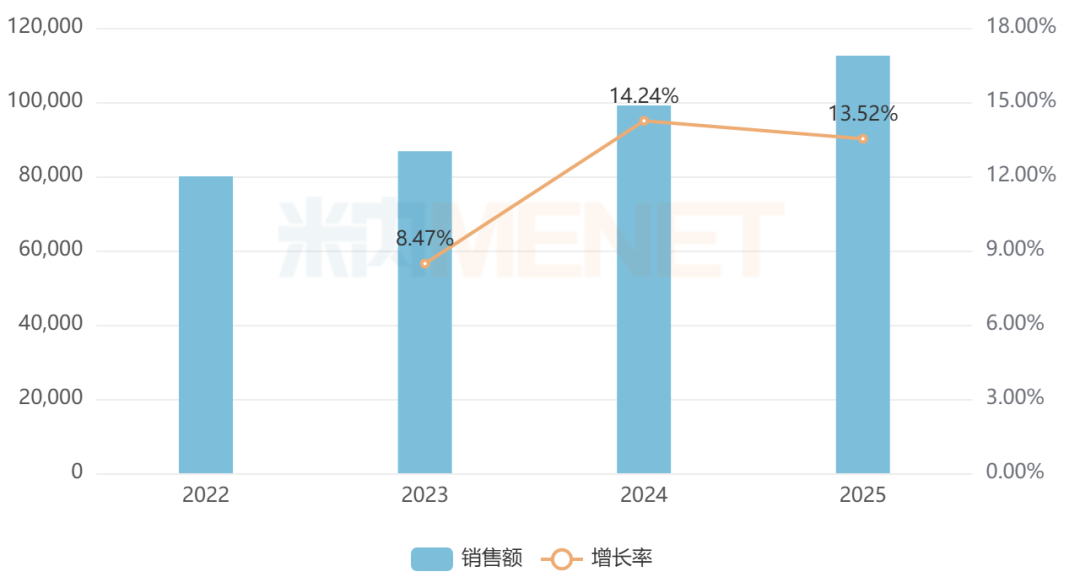 米内网数据显示,碘佛醇注射液已被纳入国家医保甲类目录,近年来在中国三大终端六大市场(统计范围详见本文末)的销售额呈逐年上涨态势,2023-2025年均超过30亿元,在造影剂(化药+生物药)产品排名中稳居首位。