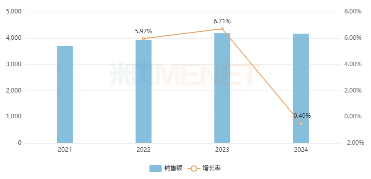 在中国三大终端六大市场(统计范围见文末),中成药的销售规模在2023年突破4000亿元,2024年微降0.49%,是近四年首跌。