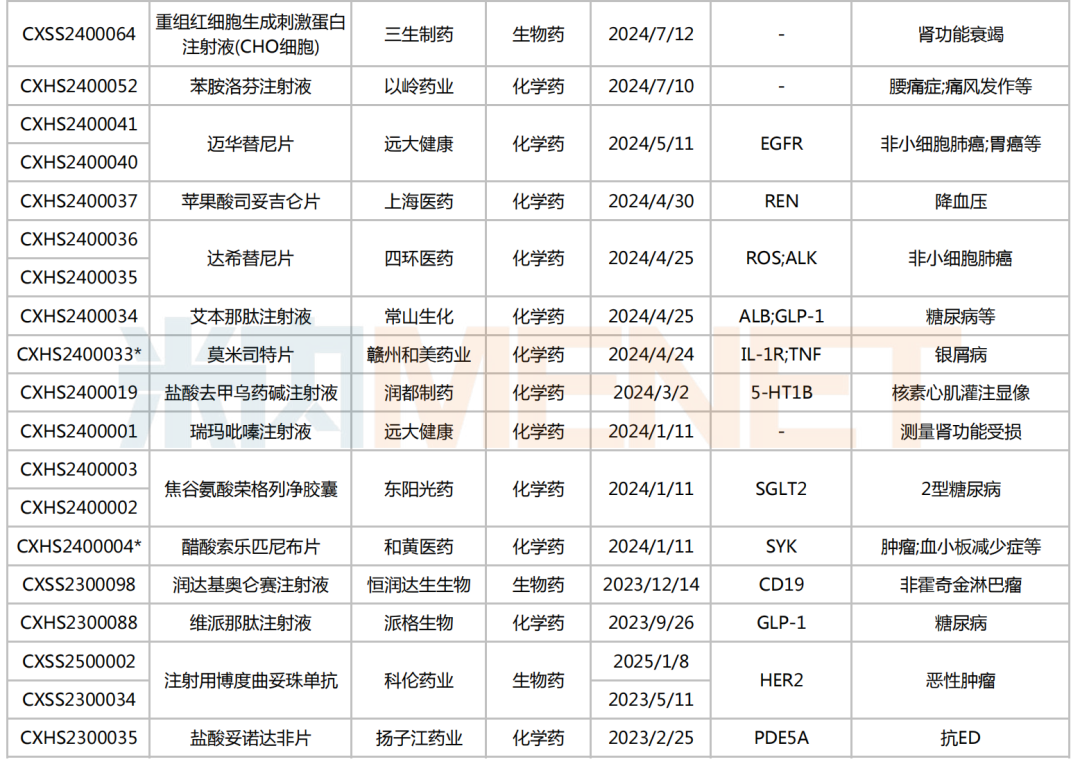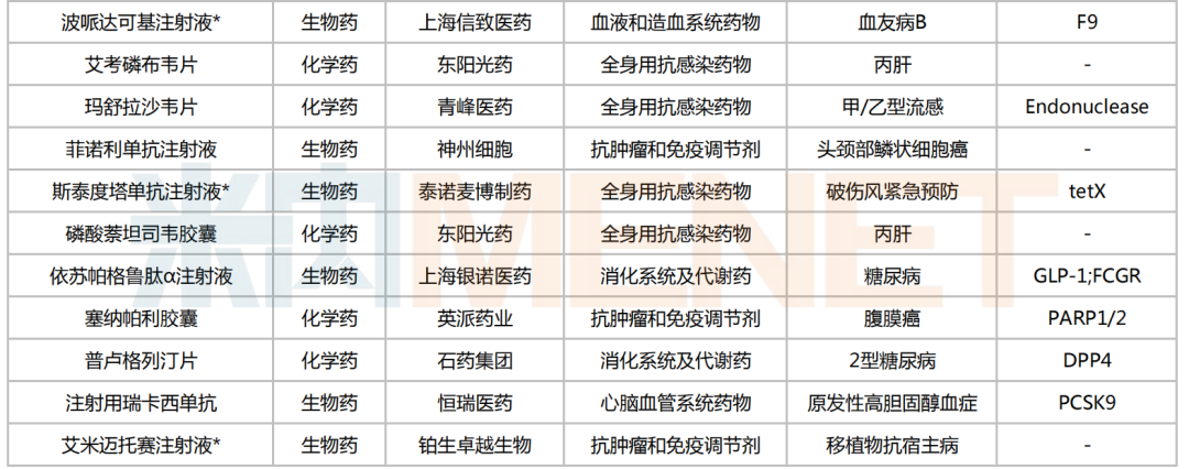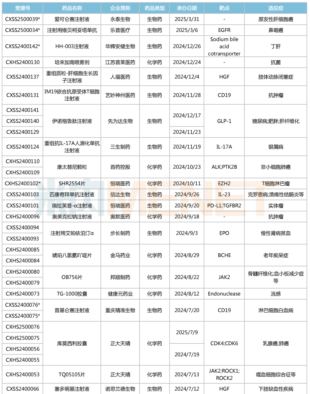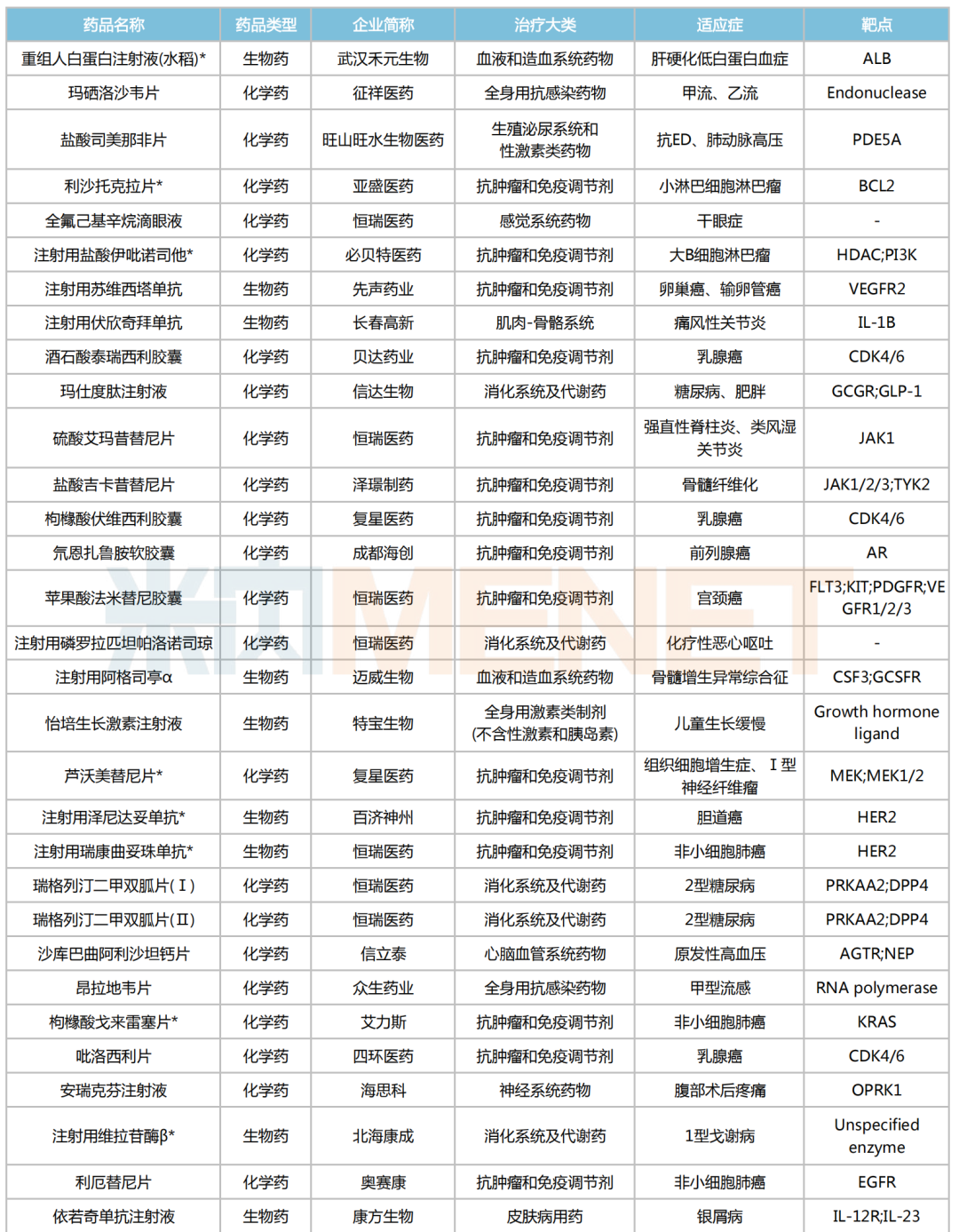 36款新药中包含21款化学药和15款生物药;从剂型上看,注射剂为主力军,占据21个席位;7个新品已纳入优先审评品种名单,包括恒瑞医药的SHR2554片、乐普医疗的注射用维贝柯妥塔单抗、和黄医药的醋酸索乐匹尼布等,上市进程进一步提速。