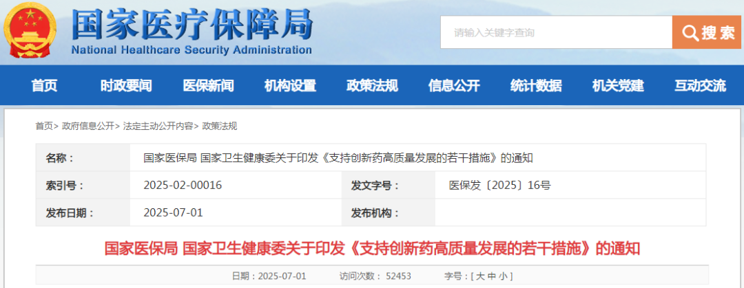 2025年7月,国家医保局、国家卫健委联合印发了《支持创新药高质量发展的若干措施》(下文简称《措施》)。《措施》提出了加强对创新药研发支持、支持创新药进入医保目录和商业健康保险创新药品目录、鼓励创新药临床应用、提高创新药多元支付能力、强化组织保障等5方面16条举措,未来一段时间将为支持创新药高质量发展提供积极助力。