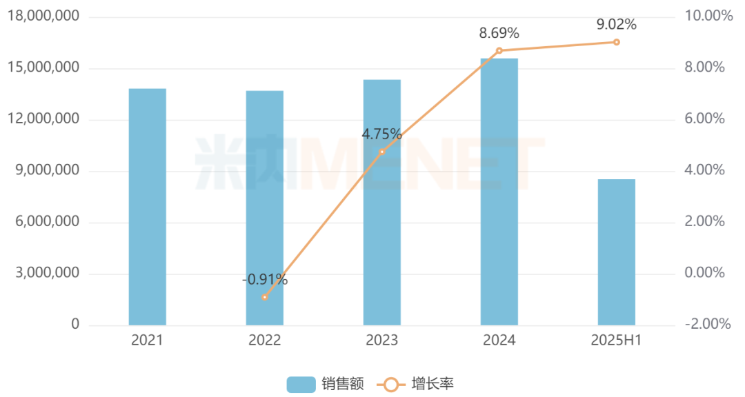 米内网数据显示,2023年以来,抗肿瘤药(化药+生物药)在中国三大终端六大市场的销售额呈逐年上涨态势,2024年其销售额超过1500亿元,同比增长约8.7%;2025年上半年超过800亿元,同比增长约9%。